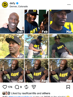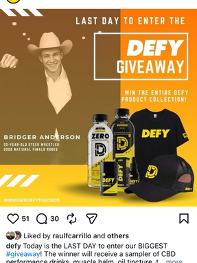 I took the reins as social strategist and content creator for DEFY, the CBD drink brand created by NFL Hall of Famer and former Denver Bronco Terrell Davis. Partnering with Terrell and the CEO, we cooked up social strategies, built hype-filled online communities, and launched viral challenges to amp up organic reach and engagement. I also helped design in-store signs, product labels, and email content to keep the brand as fresh as the drink itself.